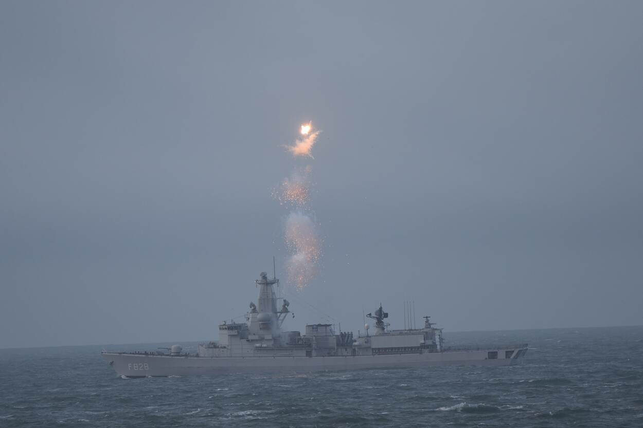 De week voor terugkeer stond nog een training op het gebied van lucht- en raketverdediging op het programma. In de omgeving van het Engelse Portland zijn tot 7 november de NATO Naval Electo-Magnetic Operations Trials gehouden. Hieraan namen de eenheden van de Standing NATO Maritime Group 1 aan deel, waaronder het Belgische fregat BNS Leopold en ons Multipurpose-fregat Zr. Ms. Van Speijk. Tijdens de oefening NEMO werden nieuwe technieken en tactieken beproefd en gemeten welke bij kunnen dragen aan het vrij kunnen opereren in een vijandelijk elektromagnetisch spectrum. De metingen zijn verricht met een diversiteit aan installaties. Nederland ondersteunde NEMO met Radar Cross Section-meetapparatuur en teams van CZSK, DMI en TNO. Op de foto lanceert de Van Speijk infrarood decoys (afleidingsmiddelen).