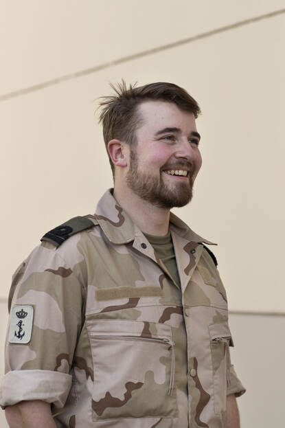 Kapitein-luitenant ter zee Ted, luitenant ter zee 1 (LD) Willianne, luitenant ter zee 2OC Willem en sergeant-majoor LDGB Hero zijn de 4 kwartiermakers van European-led Maritime Awareness in the Strait of Hormuz. "Normaal gesproken maak je deel uit van een zoveelste rotatie in een missie en borduur je voort op bestaand stafwerk. Nu we aan de startlijn staan van deze missie, mogen we het zelf bedenken", aldus overste Ted in zijn kantoor op het Force Headquarters. Bij deze nieuwe operatie zijn er echter nog geen standaard procedures van de VN, EU of NAVO. "We doen deze missie met een groep gelijkgestemde landen en beslissen zelf hoe we het gaan aanpakken. Het geeft ons ruimte om de operatie aan te pakken op de manier die het beste past bij de aard van de missie. Het is pionieren, maar ook ontzettend gaaf om zoveel vrijheid te hebben."