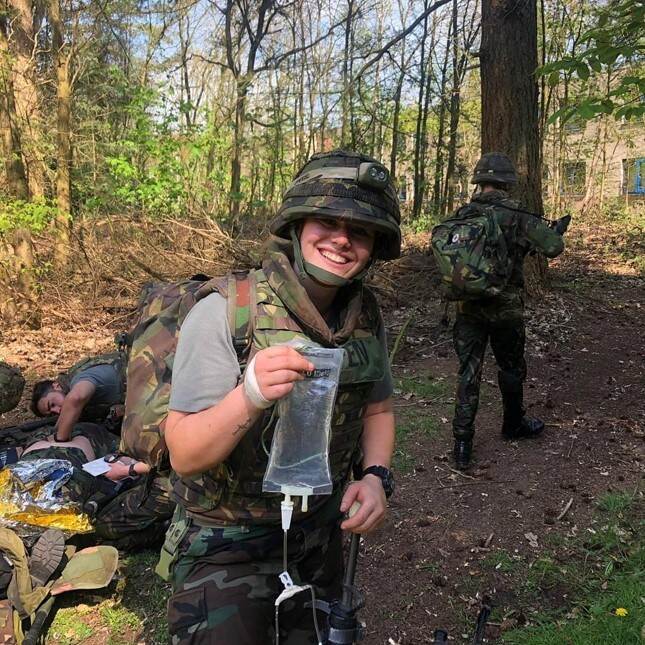 “Ik zou beginnen met mijn AMV-opleiding, toen de marine vroeg of ik ingezet wilde worden voor corona. Ik heb een verpleegkundige-diploma uit de burgermaatschappij op zak en zat thuis omdat de opleiding stillag. Inzet in een burgerziekenhuis leek me vaktechnisch interessant en ik wilde helpen. In Ede kon ik kiezen tussen SEH en IC. Het werd de laatste. Spannend, dit werk had ik nog nooit gedaan. Het was qua coronapatiënten ‘volle bak’. 70 procent van de tijd stond ik ingepakt in beschermende kleding op een ziekenkamer, nam bloed af, draaide patiënten om, stelde apparatuur in, gaf medicatie. De 12-uursdiensten waren pittig. Het mooiste was als een patiënt van de beademing af kon. Er waren ook mindere momenten, zoals toen ik iemand voor het eerst in mijn loopbaan moest afleggen. Ik schrok, maar wist de knop om te zetten. Ondanks corona was mijn tijd in Ede leuk en interessant.”