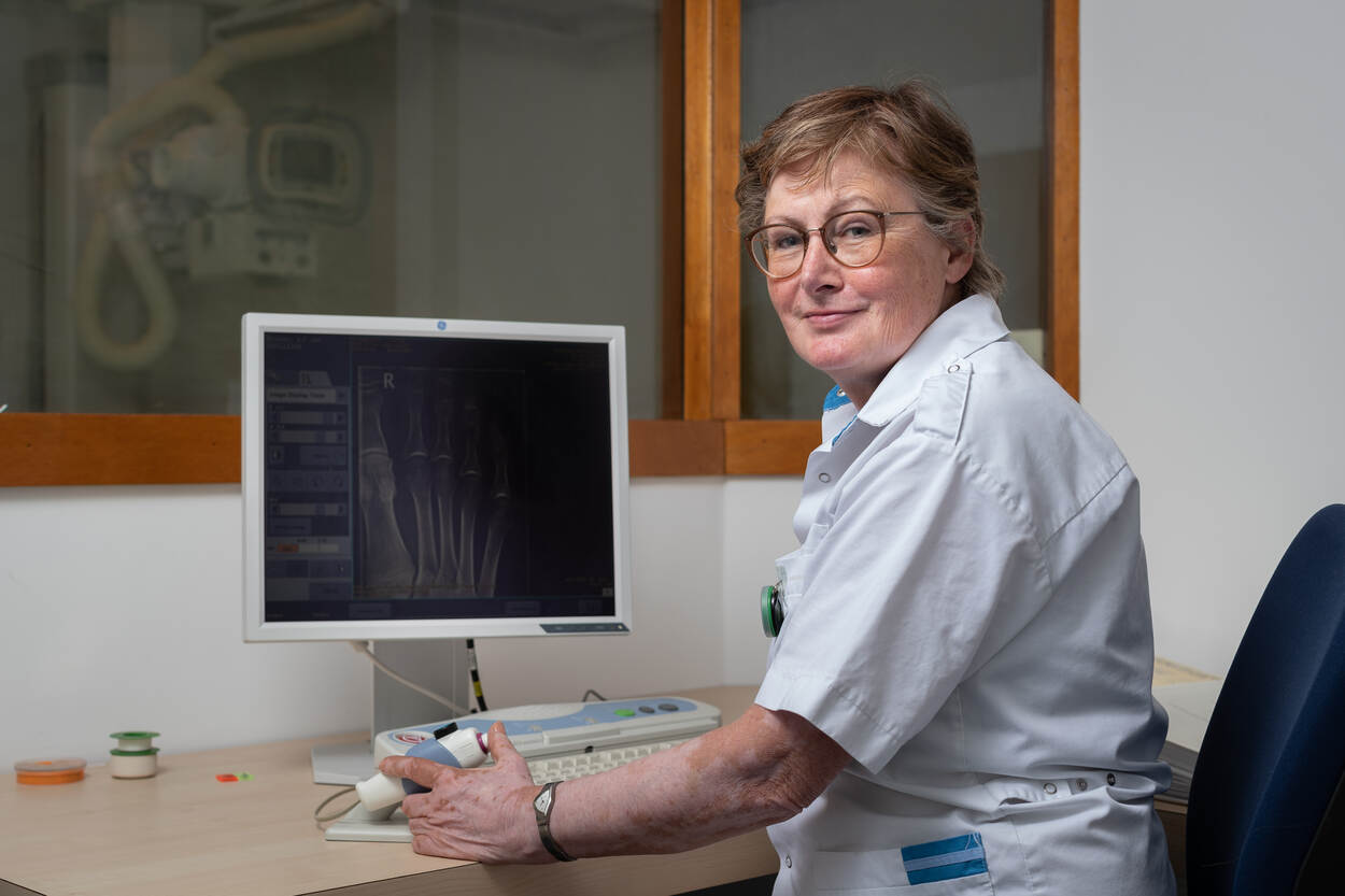 Tegen Margreet kon je niet liegen. Ze zag alles. Soms ook dingen die ze niet wilde. “Er kwam hier een keer een jongen die gekeurd moest worden voor een vervolgopleiding. Hij had nergens last van, maar op de foto’s zag ik een flinke bobbel op zijn hart. Dat moest ik stilhouden, want het was aan de dokter om dit te vertellen. Maar buikpijn had ik er soms wel van. Deze jongen werd meteen doorgestuurd naar het CMH, waar bleek dat hij een hartafwijking had. Einde opleiding betekende dat. Zo ben ik hier heel veel dingen tegengekomen; vergroeiingen, tumoren, uitzaaiingen. En soms zonder dat mensen ergens last van hadden.”