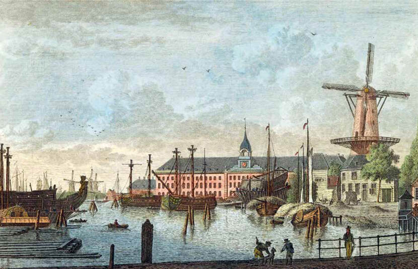 Admiraliteitsmagazijn Rotterdam, ca. 1790. Carel Frederik Bendorp (I.), naar Jan Bulthuis, 1824-1825. (Beeld: Rijksmuseum, Amsterdam)