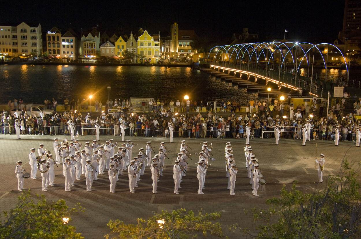 Curaçao, 2008: Vlaggenparade bij de Pontjesbrug in Willemstad