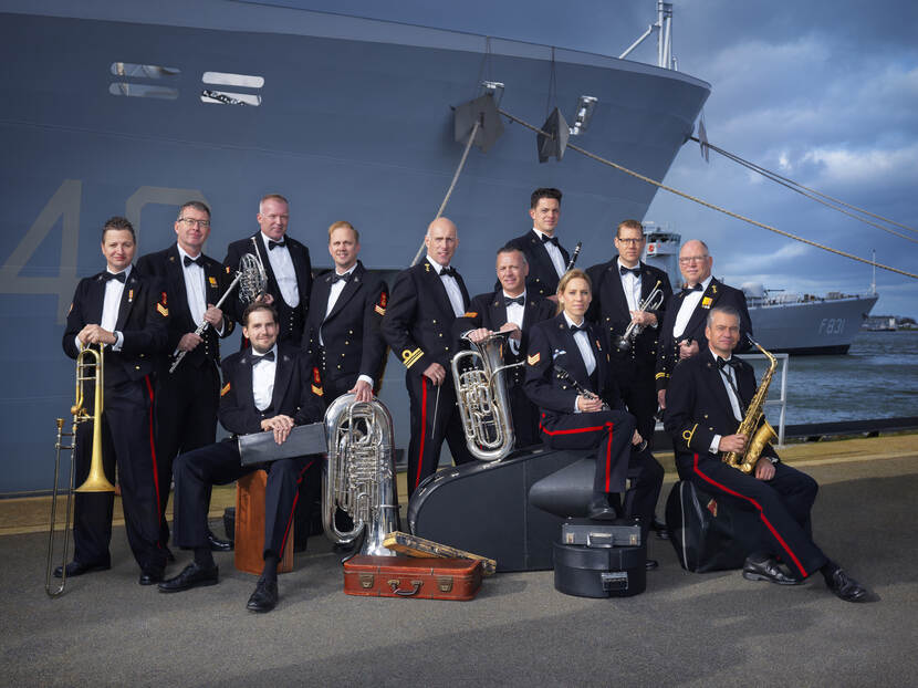Dat klinkt vol zelfvertrouwen, toch? Knegjens knikt. “Ik durf te zeggen dat de Marinierskapel 1 van de beste harmonieorkesten ter wereld is, zowel militair als niet-militair”, stelt de MARKAP-commandant. “Verder zijn we uitzonderlijk goed in het vertolken van militair ceremonieel. Dat alles dankzij onze conservatorium-geschoolde muzikanten. We gaan echt voor de besten die er te krijgen zijn; en dat nu al 75 jaar.”