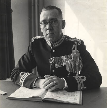 Gijsbert Nieuwland werd op 22 oktober 1945 aangesteld als eerste dirigent. (Foto: Paul Huf, 1957)