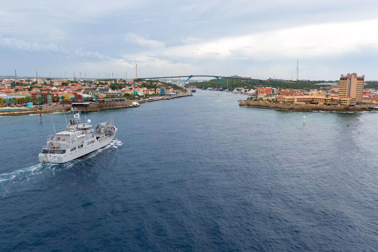 Foto boven: Zr.Ms. Pelikaan arriveert bij de haven van Willemstad, Curaçao.