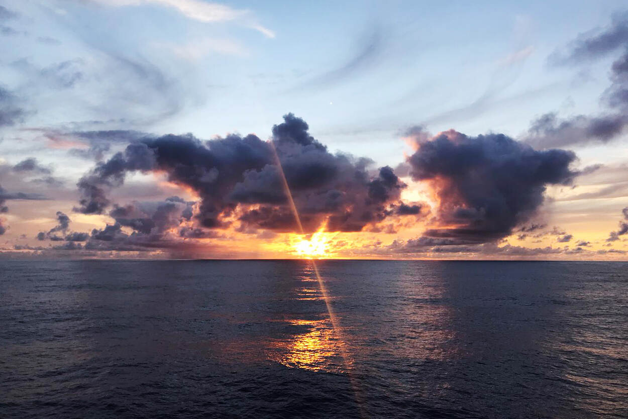 Prachtig weer tijdens de overtocht. (Foto: Zr.Ms. Pelikaan)