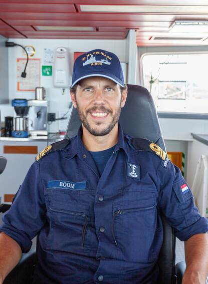 De trots van Zr.Ms. Pelikaan is de nieuwe kraan. "We kunnen veel meer doen zoals ook varend vaartuigen lanceren op zee. Wij hebben weliswaar geen eigen FRISC's, maar de mariniers wel en daar oefenen we vaak mee. Die boten kunnen we nu ook aan boord hijsen op zee", stelt commandant Boom.
