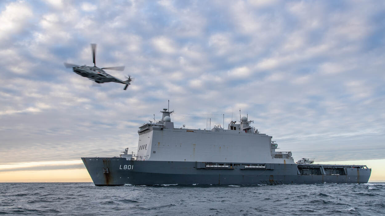 “Het type NH90 dat we nu bij ons hadden, de maritieme gevechtshelikopter, opereert in principe vanaf fregatten”, vervolgt Droste. “In de praktijk past de amfibische versie beter bij ons schip. Deze reis dienden wij echter als varend vliegveld voor de kisten, omdat het Engelse Royal Naval Airstation Culdrose het squadron vanwege corona niet kon ondersteunen.”