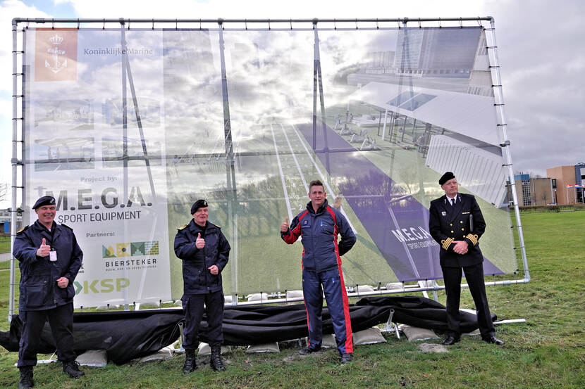 Op het terrein van de Nieuwe Haven in Den Helder is de bouw van een multifunctioneel sportveld uit de startblokken geschoten. Begin december onthulde Commandant Zeestrijdkrachten (C-ZSK) vice-admiraal Rob Kramer het bouwbord en stak de 1e schep in de grond. Als alles volgens plan verloopt, is het court eind maart 2021 klaar.