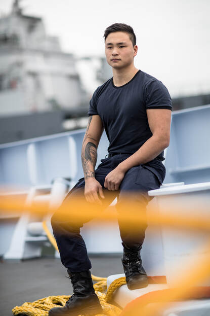 De nieuwe jas, met bijpassende regenbroek, is dan ook bestemd voor al het vlootpersoneel. Het boordtenue is namelijk nog altijd het meest gedragen uniform op schepen en op Marinebasis Den Helder. Uit 3 verschillende combinaties werden deze jas en broek na een draagproef als winnaar gekozen. “Collega’s waren te spreken over het materiaal: het is waterdicht, maar ademt wel, waardoor je niet snel transpireert.”