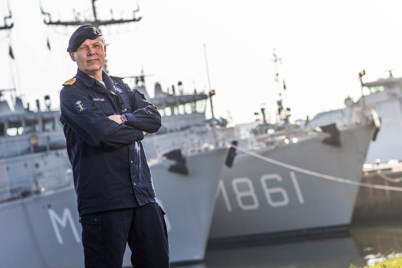 Omdat de nieuw te bouwen mijnenbestrijdingsvaartuigen straks op afstand gaan werken met onbemande varende drones, opereert de bemanning op verschillende plaatsen tegelijk. Om binnen dit ‘stand-off’ concept het overzicht te bewaren, heb je een zeer geavanceerde radar nodig. Die radar, de NS50, wordt nu gebouwd door de Franse firma Kership, met behulp van Thales Nederland. Kapitein ter zee (TD) Sander van Luik is de Nederlandse adjunct-projectleider binnen ‘replacement Mine Counter Measures Capability’ (rMCM). Hij weet van de hoed en de rand.