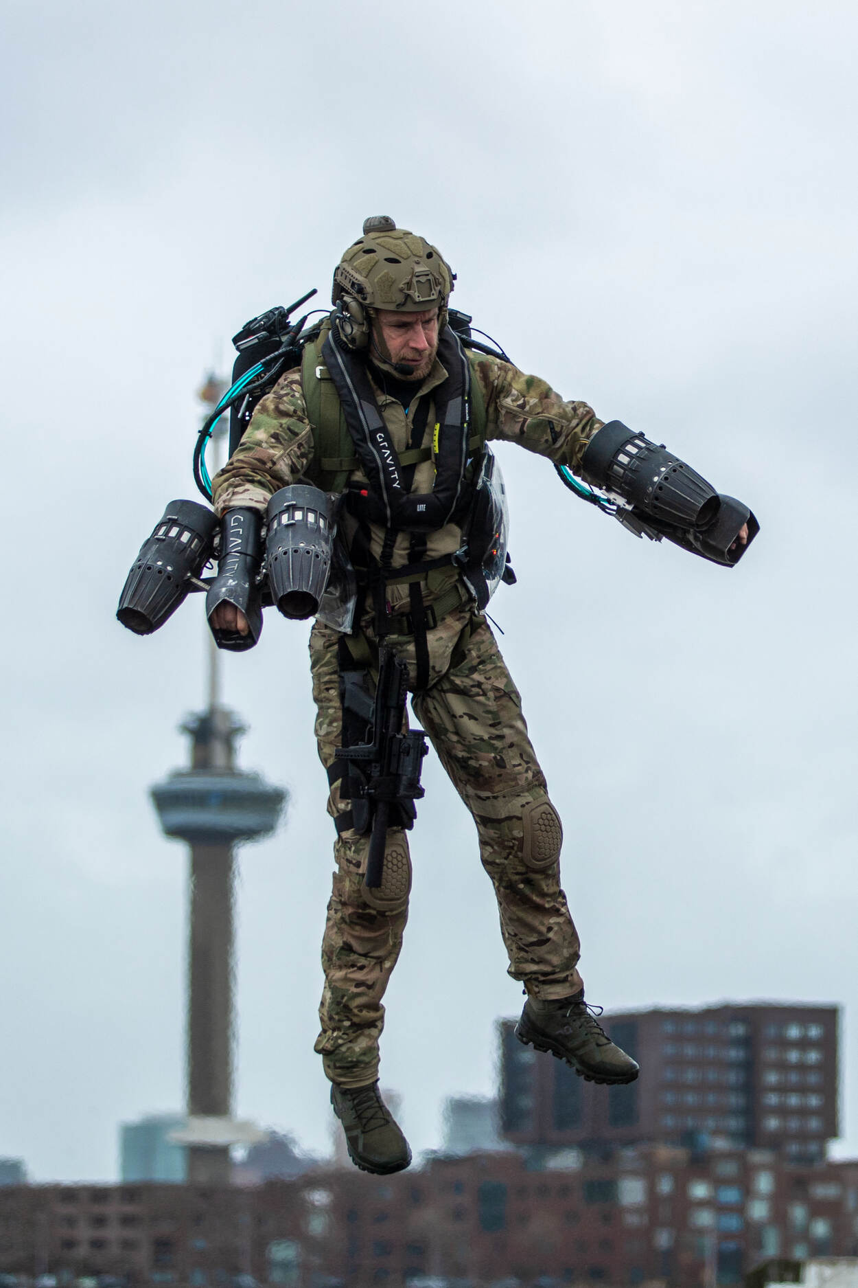 Is het een vliegtuig? Is het een vogel? Nee, het is een marinier in een ‘Gravity Fly Suit’. In no time staat hij plotseling op de brug van een schip of op een bergtop in Schotland. De eerste tests met het vliegpak stemden de zeesoldaten zeer enthousiast, maar hoort het revolutionaire pak straks daadwerkelijk bij de uitrusting?