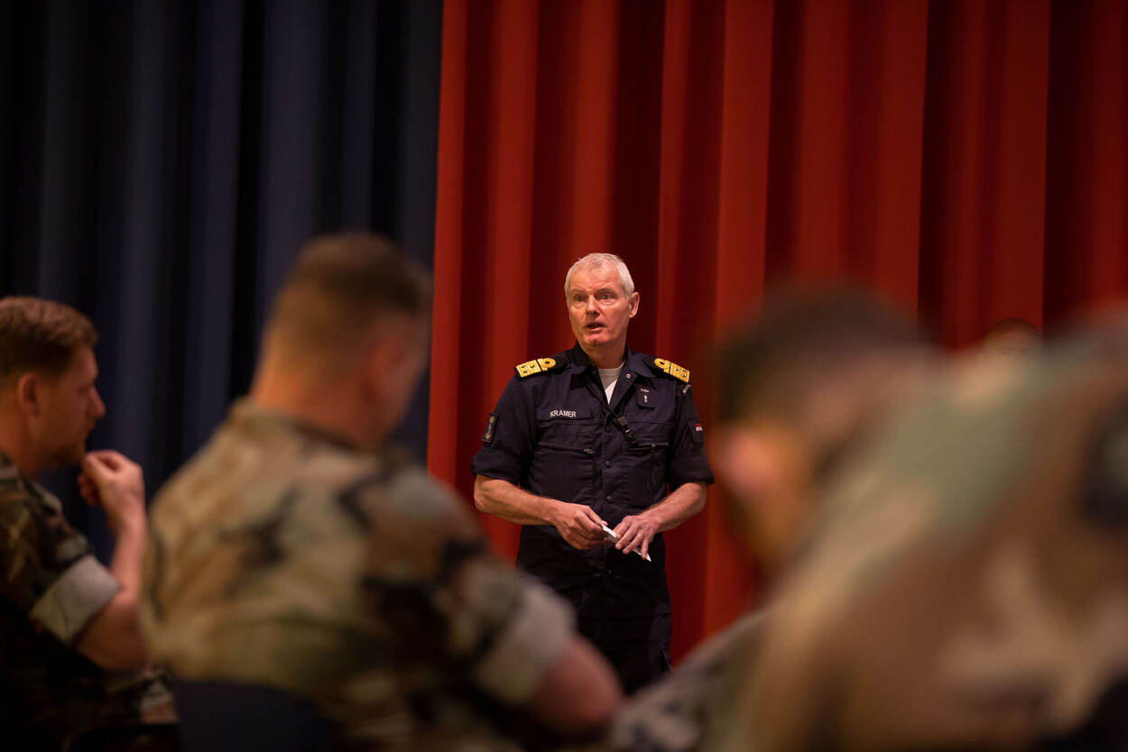 Kramer sprak zijn waarschuwende woorden maandag bij het Mariniers Opleidingscentrum op de Van Ghentkazerne in Rotterdam. Hier streek hij neer met zijn Roadshow, een initiatief om personeel in coronatijd op de hoogte te stellen van wat er speelt bij het varende krijgsmachtdeel. Vaste sidekick is Chef d’ Equipage CZSK adjudant TD Jack Gouda.  Het tweetal heeft al een aantal sessies bij de marine-etablissementen achter de rug.