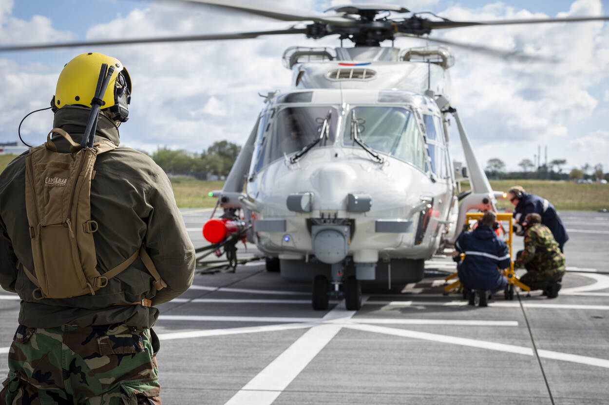 Keer op keer oefenen werpt zijn vruchten af. Na verloop zie je dat de ground crews telkens een stukje van de ‘pitstop’ weten af te snoepen. Er waren aan het begin wat schoonheidsfoutjes, maar gaandeweg de oefening verloopt de in vaktermen Running Rotor Refuel en Re-armament, of Four Times Romeo, steedsbeter. “Daar ben ik blij mee”, roept Johan. “Dit is een belangrijk onderdeel van de operationele gereedstelling. Oefenen in de simulator is toch anders dan in het echt. Dit is een veelbelovend begin.”