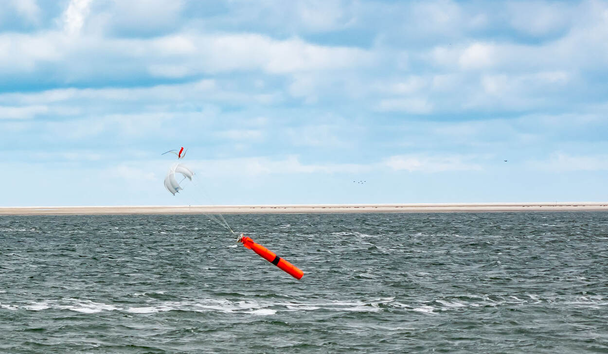 Een parachuutje zorgt ervoor dat een Mk 46 altijd onder dezelfde hoek in het water belandt.