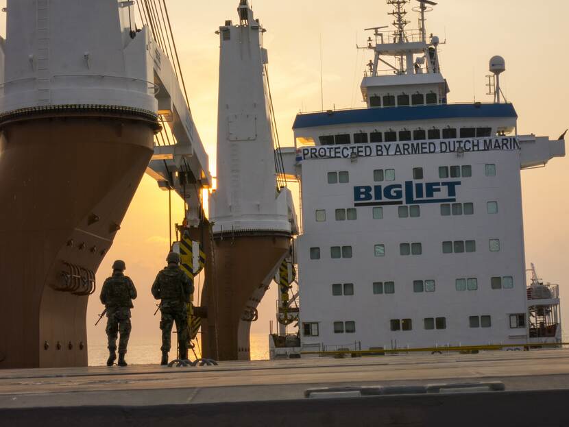 Alle aanvragen voor VPD’s krijgt Sikkes op zijn bureau. Die hebben dan al onder de loep gelegen bij de Kustwacht en de ministeries van Buitenlandse Zaken, Justitie en Veiligheid en Infrastructuur en Waterstaat. “Wij als Defensie zijn vervolgens de aangewezen partij om die bescherming te bieden. Ik kijk dan of we capaciteit beschikbaar hebben – dat is eigenlijk altijd het geval – en leg contact met de reder. Vervolgens zorgt de VPD-cel in Den Helder voor de uitvoering. Die stelt het team samen en verzorgt de logistiek, zoals rond wapenpakketten en andere materialen.”