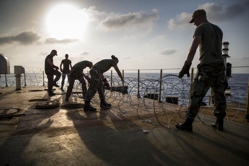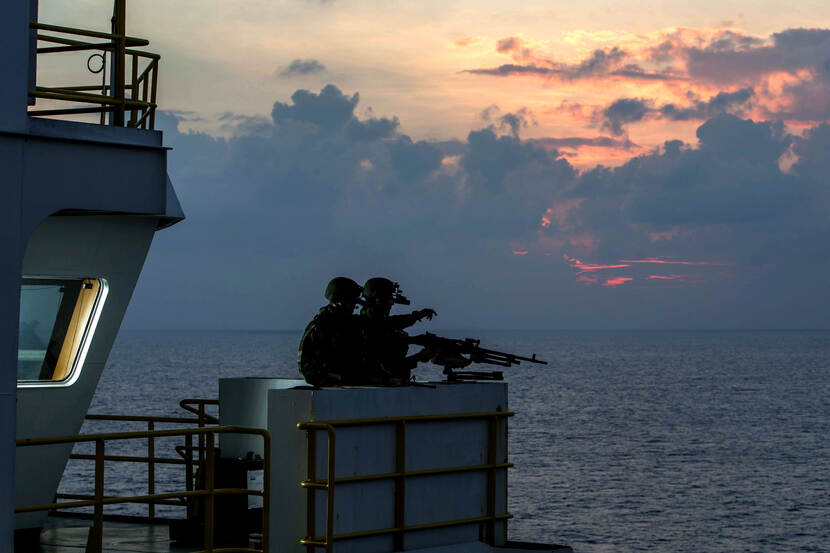 Hoewel het de laatste jaren beter gaat, is er nog steeds piraterijdreiging in met name de Golf van Aden en de wateren ten oosten van Somalië. Koopvaardijschepen worden daar nu nog exclusief beveiligd door Vessel Protection Detachments (VPD’s), bestaande uit mariniers en sinds enige tijd ook militairen van de vloot. Zij maken deel uit van het 100-man & vrouw sterke Fleet Marine Squadron. Vanaf 1 februari mogen nu ook maritieme beveiligingsbedrijven de beveiligingstaken uitvoeren. Tenminste, als zij aan een lange reeks strenge voorwaarden voldoen rond, bijvoorbeeld, bedrijfsvoering, veiligheid en screening en inzet van personeel.