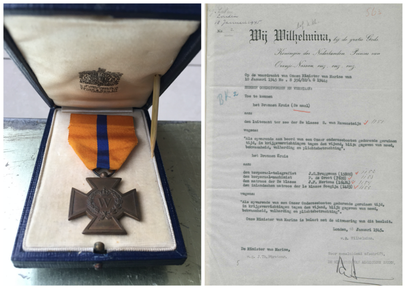 De aanval op de U-168 is er 1 in een reeks van succesvolle en gedurfde operaties, getuige het feit dat 12 van de 65 bemanningsleden in december 1944 worden voorgedragen voor een dapperheidsonderscheiding. Op 25 januari 1945 vindt de feestelijke uitreiking plaats. Commandant Goossens wordt tot Ridder der Vierde Klasse van de Militaire Willemsorde geslagen en officier Marine Stoomvaart Dienst der eerste klasse Andries de Vaal krijgt de Bronzen Leeuw uitgereikt. De 10 anderen, onder wie korporaal-machinist Pieter de Groot, ontvangen een Bronzen Kruis. Dit vanwege hun belangrijke bijdrage aan de operaties die deels plaatsvonden in ondiepe wateren of desnoods aan de oppervlakte, zoals toen een Japanse vrachtschip met het boordkanon werd vernietigd, nadat torpedo’s dienst weigerden.