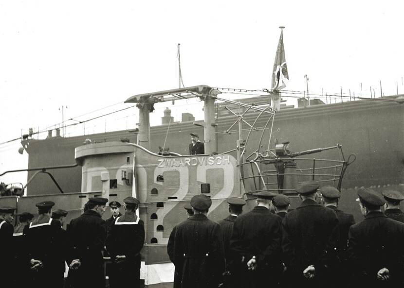 Aangezien de bemanning van de O19 tot de best geoefende onderzeebootbemanningen behoort, heeft de marineleiding besloten alle opvarenden over te plaatsen naar een net afgebouwde onderzeeboot van de modernste klasse. Het betreft een Britse T-klasse onderzeeboot die onder Nederlandse vlag de naam ‘Zwaardvisch’ (P322) krijgt. Commandant is luitenant ter zee 1 Hendrik Goossens. Hij en zijn bemanning staan strak in het gelid als Prins Bernhard de boot op 23 november 1943 te Barrow-in-Furness inspecteert tijdens de officiële indienststelling.