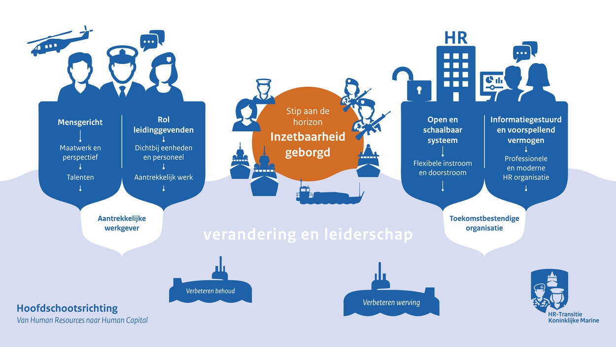 De juiste medewerker op de juiste plaats in de organisatie, dat is het uitgangspunt van de HR-transitie van de KM. Het plaatsingsprotocol is niet langer heilig. De transitie maakt de marine als werkgever extra aantrekkelijker én gereed voor de toekomst.