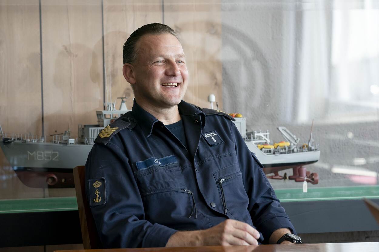 Voordat Jas in 2011 voor het eerst voet op de Urk zette, voer hij op een Multi Purpose (M)-fregat. Totdat hij de behoefte voelde om duiker te worden en overstapte naar de Mijnendienst. “Het onbekende van de onderwaterwereld trok me. Dat is een andere dimensie dan werken op een M-fregat. Elke duik is een nieuwe ervaring.” Als bootsman op de Urk moest Jas omschakelen. “In vergelijking met een M-fregat vaart een mijnenjager langzamer. Ik vroeg me af waaraan ik was begonnen… Aan de andere kant bereik je je doel ook met langzaam varen. Verder gaat het er bij de Mijnendienst minder militair en formeel aan toe dan op een groot bovenwaterschip. Iedereen gaat makkelijk met elkaar om. Niks clubvorming, zoals soms gebeurt op grote bovenwaterschepen. Elk bemanningslid is belangrijk. Doordat je elkaar constant ziet, ontstaat verbroedering. Als duiker was ik op de Urk ook op mijn plek, omdat ik constant operationeel bezig was.”