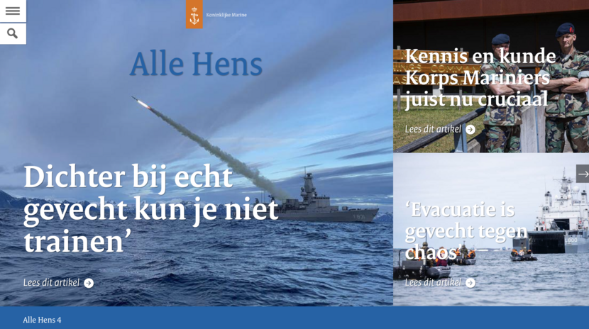 Net als begin 2020 en juli 2021 brengt de Koninklijke Marine ook dit jaar eenmalig een gedrukte versie van Alle Hens uit. Naar verwachting ploft dit nummer in de half september op de mat bij alle marinemensen en andere militairen plus burgermedewerkers die binnen CZSK geplaatst zijn. Behoort u niet tot die categorieën, maar wilt u dit papieren juweeltje ook graag ontvangen, mail dan uw adresgegevens voor 1 augustus naar: allehens@mindef.nl. (Uw adresgegevens worden eenmalig gebruikt voor de verzending van Alle Hens. Na verzending zullen uw gegevens worden vernietigd.)