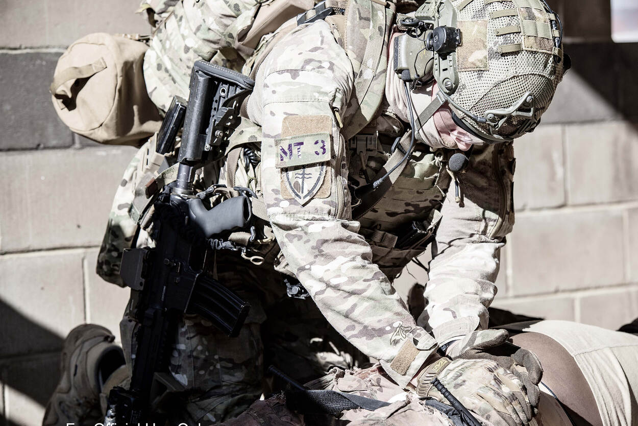 Medische zorg verlenen in een heimelijke, tactische situatie. Dat is waar de SOMT de deelnemende militairen in specialiseert. De opleiding, uniek in de wereld, duurt 3 maanden en wordt een keer per jaar gegeven in Canada. De specialistische opleiding is dermate in nevelen gehuld, dat ook Frits er tot een jaar geleden nooit van had gehoord. “Tot ik er een Belgische collega over hoorde praten tijdens een oefening. Ik dacht meteen: dat is iets voor ons. Als AMV’er ben je goed onderlegd in het medische, maar als verpleegkundige bij NLMARSOF speelt ook het groene, het tactische, een grote rol.” Want, valt arts en luitenant ter zee 2OC (AR) Ans van dezelfde eenheid hem bij: “Het laatste dat je wilt is de operatie verstoren”.