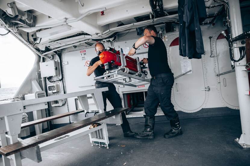 Of Muylle het ten slotte spannend vindt om met het NAVO-vlootverband in de oostelijke Middellandse Zee te opereren, met een schuin oog op de situatie bij Oekraïne? “Ach, als we ingezet worden, dan krijgen we te maken met dezelfde soort mijn, bom of granaat die we normaalgesproken ook tegenkomen op de Noordzee. En daar ligt nogal wat.” De Bruijne valt hem bij: “Voor mij maakt het ook geen verschil waar we opereren; het is altijd ècht wat wij doen.”