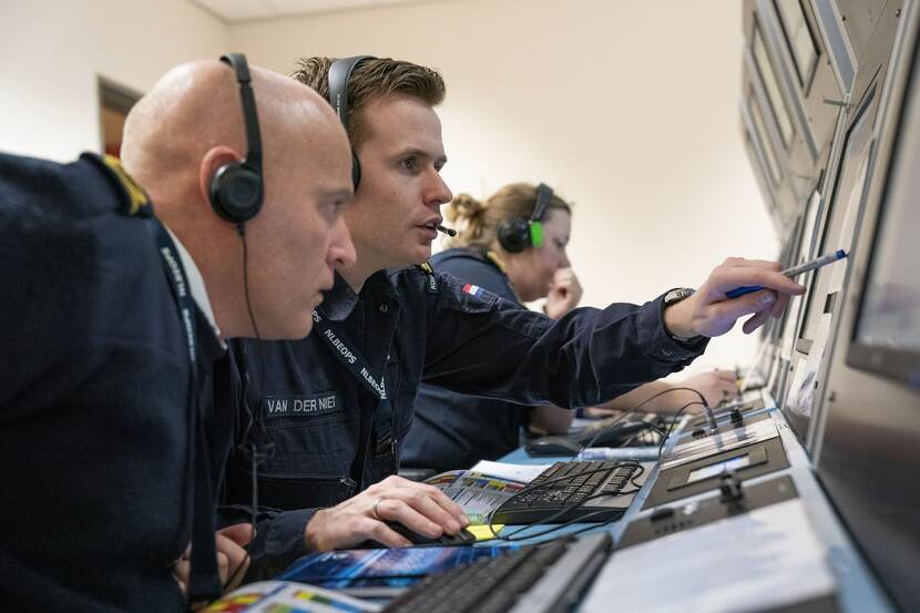 De cursist die daaraan behoefte heeft, kan een beroep doen op de in de opleiding meelopende maritiem-psycholoog. ‘Wat gaat goed, wat kan beter?’. “Hij helpt de cursisten om in het juiste spoor te blijven. Sinds hij er is, ligt het slagingspercentage hoger, wat niet wegneemt dat er ook afvallers zijn. Op een aantal van 20 á 24 cursisten gemiddeld 3. Soms ligt het werk iemand minder goed of beschikt hij over nog onvoldoende operationele ervaring. Of hij of zij vindt het lastig om een team aan te sturen. Een commandocentrale-officier moet de leden van het team namelijk wel, vooral onder lastige omstandigheden, min of meer de duimschroeven kunnen aandraaien. Ofwel: effectief en efficiënt inzetten om de missie te volbrengen. Afvallers krijgen een herkansing of trekken de stekker er zelf uit en kiezen voor een andere richting binnen de organisatie. Met de ervaring die ze bij ons opdoen, zijn ze ook ergens anders prima inzetbaar”, vertelt Glaser.