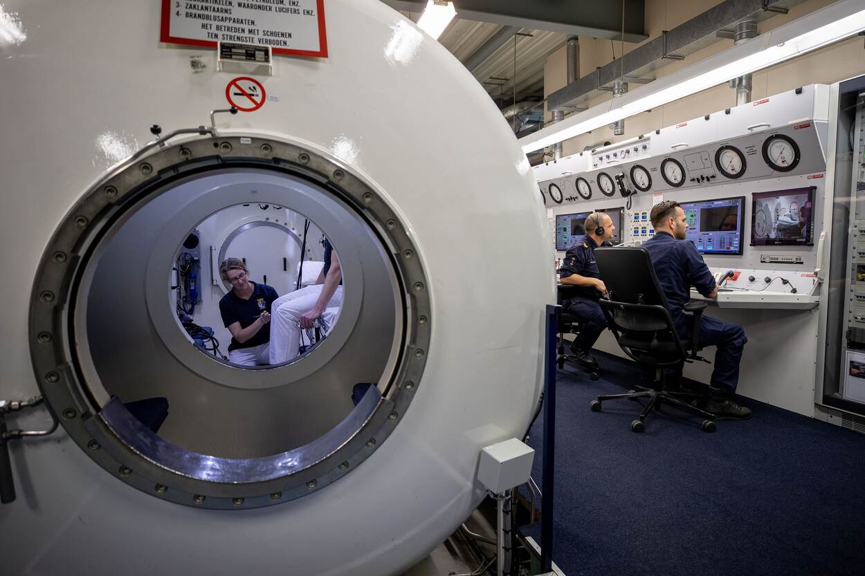 “Buiten Defensie geniet ons centrum waarschijnlijk meer bekendheid dan daarbinnen. Dat komt mede door de onderzoeken die wij doen en die in het buitenland aandacht krijgen. Zo verricht een van onze duikerartsen promotieonderzoek naar de effecten van ingeademde zuurstof op de longen, tijdens en na het duiken. Wat doet dit daarmee? Veroorzaakt het schade aan de longen? Is die blijvend? Het onderzoek moet het mogelijk maken om langer en dieper, maar vooral ook veiliger te kunnen duiken.”