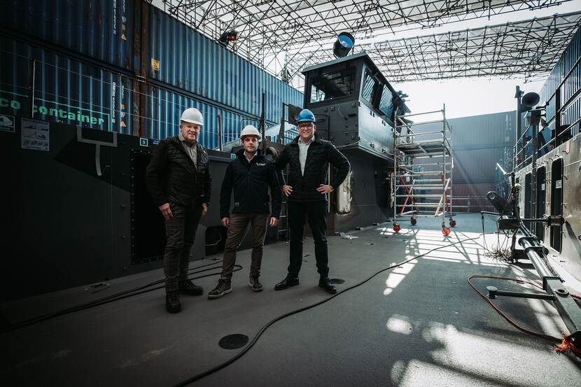 Maak kennis met de 3R’en: Rob Nieuwenhuizen (DMI, projectleider) Remco Bouma (DMO, projectleider) en Ruben Kalisvaart (De Haas, commercieel directeur). Zij zorgen er samen voor dat het project in goede banen komt en blijft. "Een mooi voorbeeld van de groeiende samenwerking tussen Defensie en de industrie. En hoe mooi is het dat je dan de Koninklijke Marine terugkeert op deze werf in Rotterdam, waar ooit de onderzeeboten van de Walrusklasse zijn gebouwd”, zegt Rob Nieuwenhuizen.