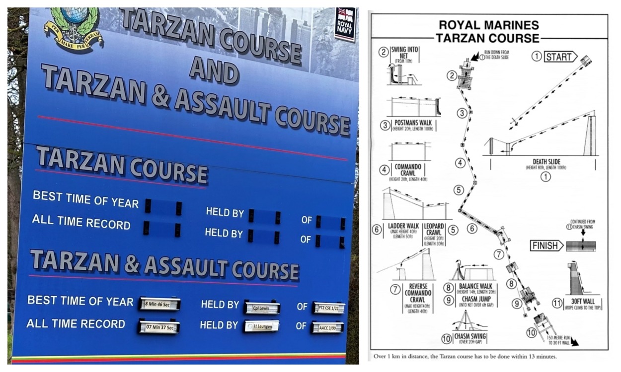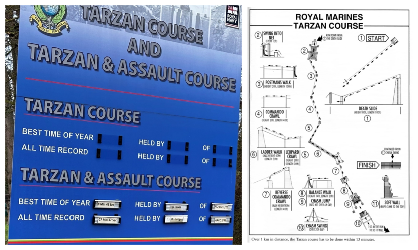 Dag 2 moet een ‘verademing’ geweest zijn, met alleen 9 mijl speedmarsen. Maar dan wel met volle uitrusting en de eis om binnen 90 minuten terug te zijn. Dag 3 volgde een parcours onder tijdsdruk op de Tarzan & Assault Course, een touwbaan met 11 hindernissen in 13 minuten.