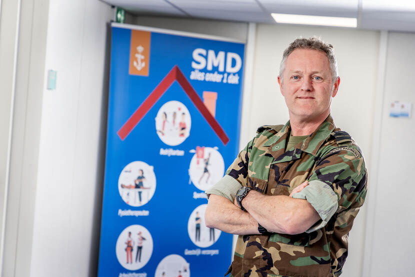 Patiënten van de SMD kunnen rekenen op de hulp van een ‘leger’ aan in- en externe specialisten. Ongeveer 25 in totaal, zoals fysiotherapeuten, sportinstructeurs, geestelijk verzorgers, begeleidingsofficieren en (administratief) ondersteuners. Ook is er de zorg door huisartsen, orthopeden, revalidatieartsen, psychologen, psychiaters en cardiologen. “Per geval bekijken we wat iemand nodig heeft. Dat lukt meestal goed, maar doordat ook de militaire gezondheidszorg kampt met wachtlijsten kan een herstel langer duren dan gepland. Toch slagen we er meestal wel in om iedereen te helpen. Dat wil zeggen: áls ze onze uitgestoken hand aanvaarden. De SMD is mensgericht, maar ook zakelijk waar nodig”, zegt Wijnands.