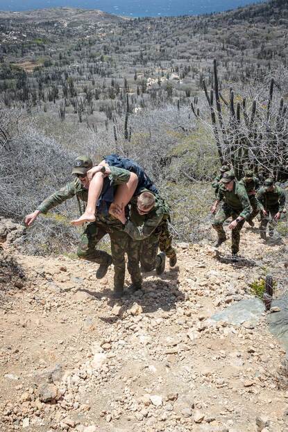 Hetzelfde geldt voor de hulpverlener. Hij moet zich kunnen inleven in de problemen van de patiënt, maar moet niet alleen een troostende arm bieden, vult begeleidingsofficier kapitein der mariniers John de Ruiter aan. “Een arts of begeleidingsofficier mag zijn professionele rol nooit uit het oog verliezen.” Wijnands: “Inderdaad, met alleen meehuilen is de persoon niet geholpen.”