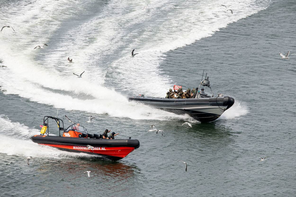 Tijdens de demonstratie ‘het onderscheppen van een quasi drugsboot’ ging het er hard aan toe. (Foto: Keesnan Dogger)