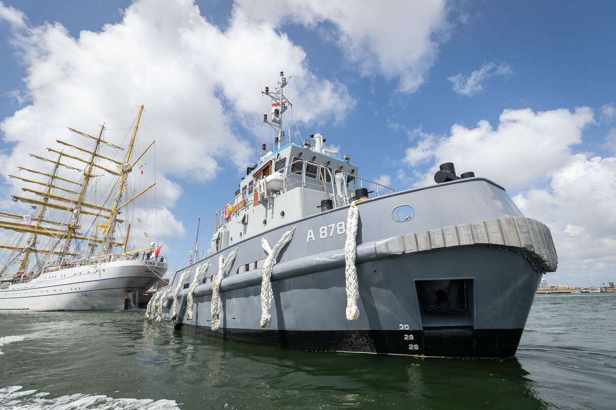 De indrukwekkende slepers van de Noordzeeklasse begeleidden de ‘Tall Ships’ bij het uitvaren. (Foto: SGTBDAV Gregory Fréni)