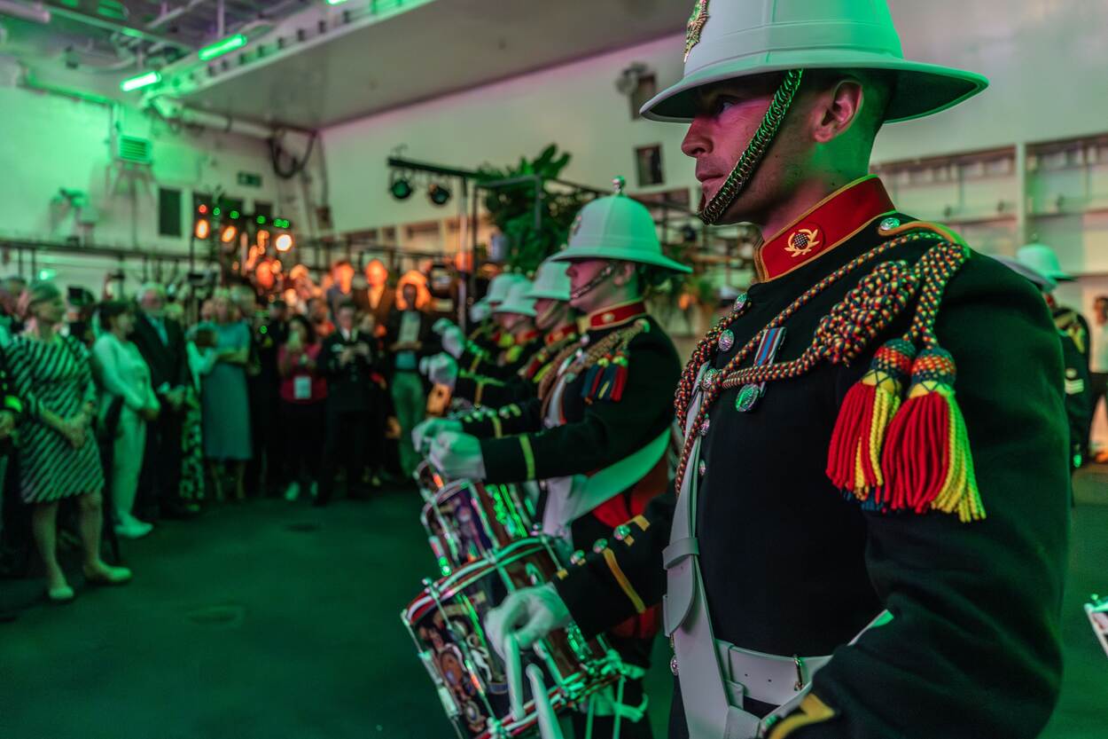 De festiviteiten rond 50 jaar ‘UK/NL Amphibious Force’ aan boord van HMS Albion werden opgeluisterd door de ‘Band of His Majesty’s Royal Marines Portsmouth’. (Foto: SM Jan Dijkstra)
