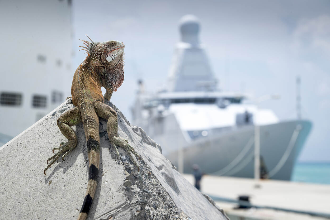 Orkaan Irma raasde in 2017 over het groene eiland en liet een spoor van vernieling achter. Hoewel inmiddels overal gebouwen uit de grond herrijzen, zijn ook ruïnes nog her en der zichtbaar. Die herinneren eraan hoe de natuur (opnieuw) kan toeslaan. “In zo’n geval kunnen we, op formeel verzoek van de lokale autoriteiten, zachte en/of harde militaire bijstand verlenen”, vertelt majoor der mariniers Arie Noordam, sinds 2020 commandant van het Mariniersdetachement. Hij sloot onlangs de tweejaarlijkse Hurricane Relief Exercise (HUREX) af, ter voorbereiding op het inmiddels geldende orkaanseizoen. “In de maanden met een vergroot risico draaien we de reguliere bedrijfsvoering, maar zitten we wel op een notice to move van 48 uur, waarin we volledig moeten kunnen opereren. We zijn altijd aanwezig, maar nu extra alert.”