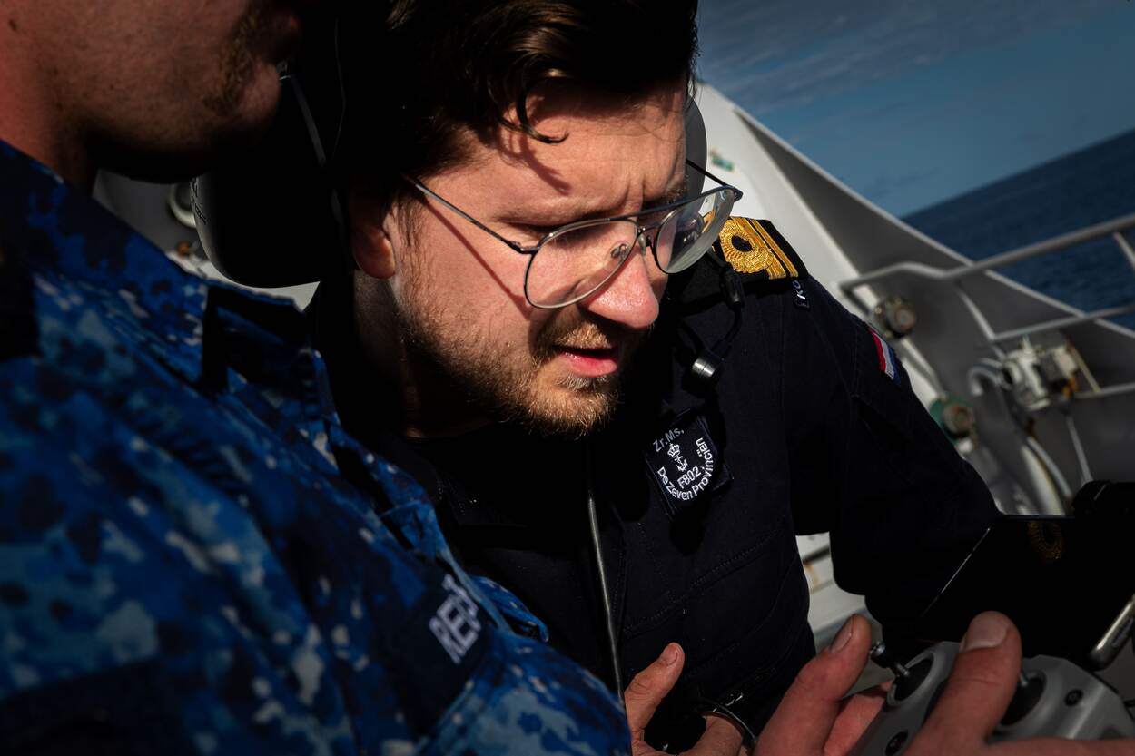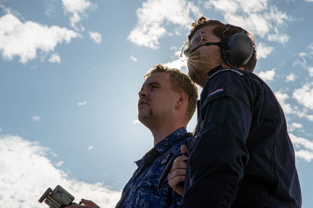 Het idee is om de verdedigingssystemen te testen én om bemanningsleden van De Zeven Provinciën ermee te leren werken. Joep: “We hebben een oproep gedaan en verschillende matrozen en korporaals hebben zich gemeld. Hen hebben we opgeleid binnen de verschillende disciplines. Want om te testen hebben we natuurlijk naast counter Unmanned Aerial Systems-maatregelen ook target drones nodig. Ook die worden door de bemanning bestuurd; daar hebben ze een civiele opleiding voor gehad en ermee geoefend op land en op zee. Voor de anti-drone systemen zijn mensen hier aan boord opgeleid door de instructeurs die mee zijn.” Eén van die bemanningsleden is korporaal LDGB Myron (28). Ook hij verwijst naar de oorlog in Oekraïne. “Je ontkomt er niet meer aan, dat blijkt wel. Ik snap goed dat de marine zich met deze ontwikkelingen bezighoudt. Dus toen de oproep kwam, heb ik me aangemeld.”