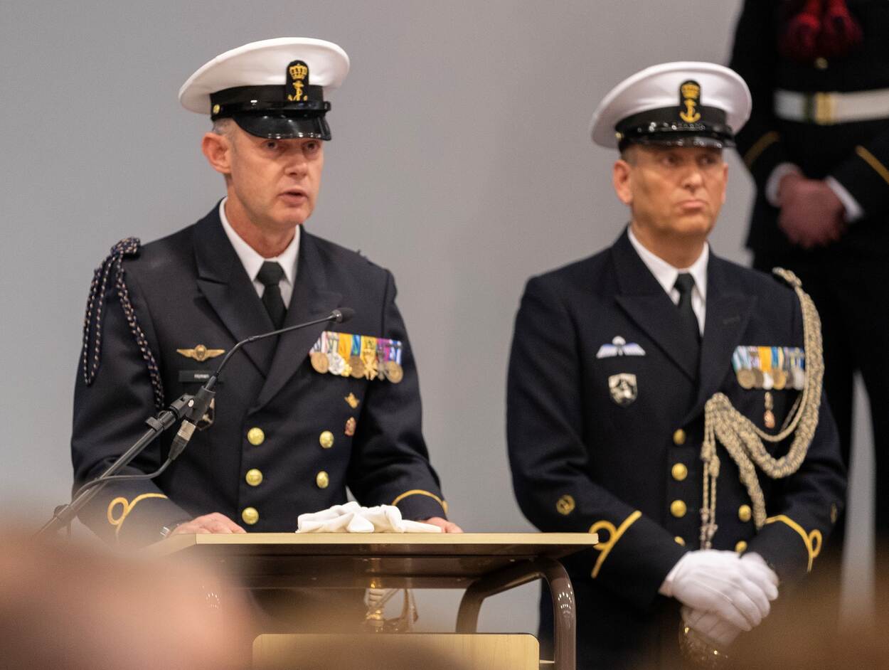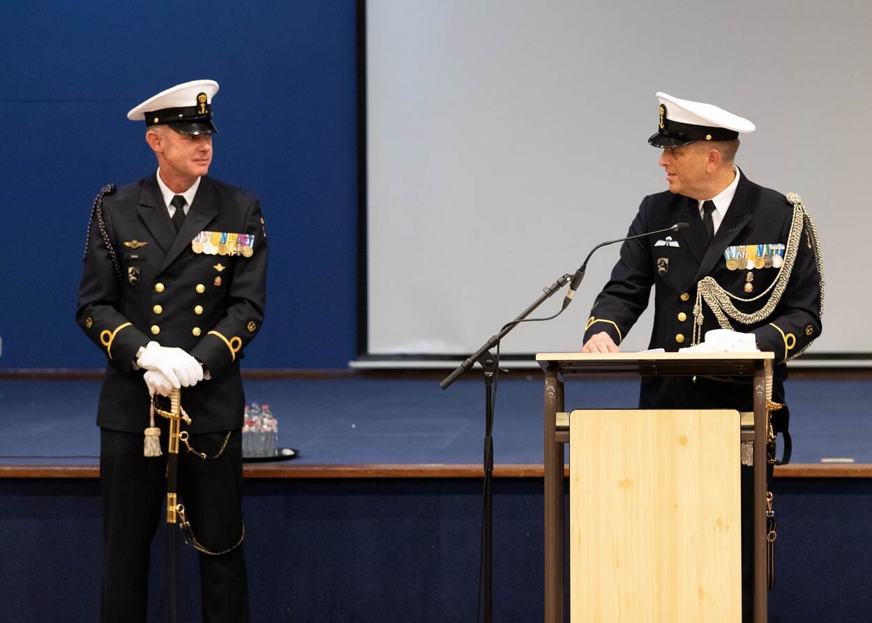 C-ZSK VADM René Tas aan het woord tijdens de fuctieoverdracht in Den Helder.