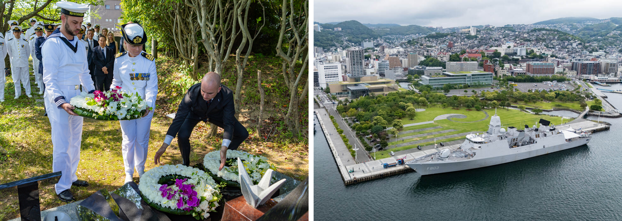 In Nagasaki, Japan, legt de bemanning een krans bij het monument ter nagedachtenis aan de krijgsgevangenen die geïnterneerd zaten in het kamp Fukuoka 14-B. Ook bezocht een delegatie het verderop gelegen gevangenenkamp Fukuoka-2. Ook hier zaten in de oorlogsjaren veel Nederlandse (marine-)militairen gevangen en moesten ze onder erbarmelijke omstandigheden dwangarbeid verrichten.