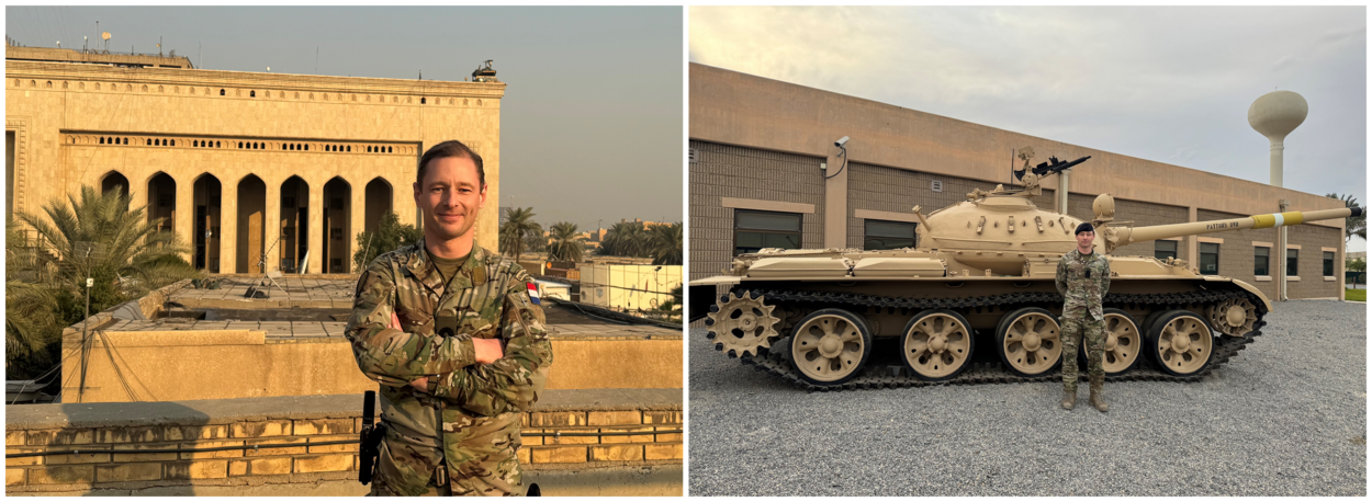 “Normaalgesproken ben ik commandant van het 24e Raiding Squadron in Doorn. Ik heb mijzelf aangemeld voor deze uitzending (van 1 december 2024 tot 11 juni) binnen de NAVO Missie Irak. Na mijn opleiding tot officier der mariniers heb ik een master HRM gevolgd aan de Universiteit Utrecht. Ik had meerdere plaatsingen in het P&O-domein, afgewisseld met operationele plaatsingen als Troop Commander, in Nederland en op Aruba, en als projectleider. In Irak ben ik geplaatst bij het Professional Security Education (PSE)-departement op Union III in Bagdad. Mijn taak is die van adviseur binnen het PSE-departement, waarbij ik focus op curriculum-, faculteit- en institutionele ontwikkeling. Ik werk samen met NAVO-coalitiepartners, de Nederlandse ambassade en Irakese scholen en instituten. Het mooie aan deze taak is het veelvuldige contact met de Irakezen en zien dat er op sommige fronten vooruitgang wordt geboekt.”