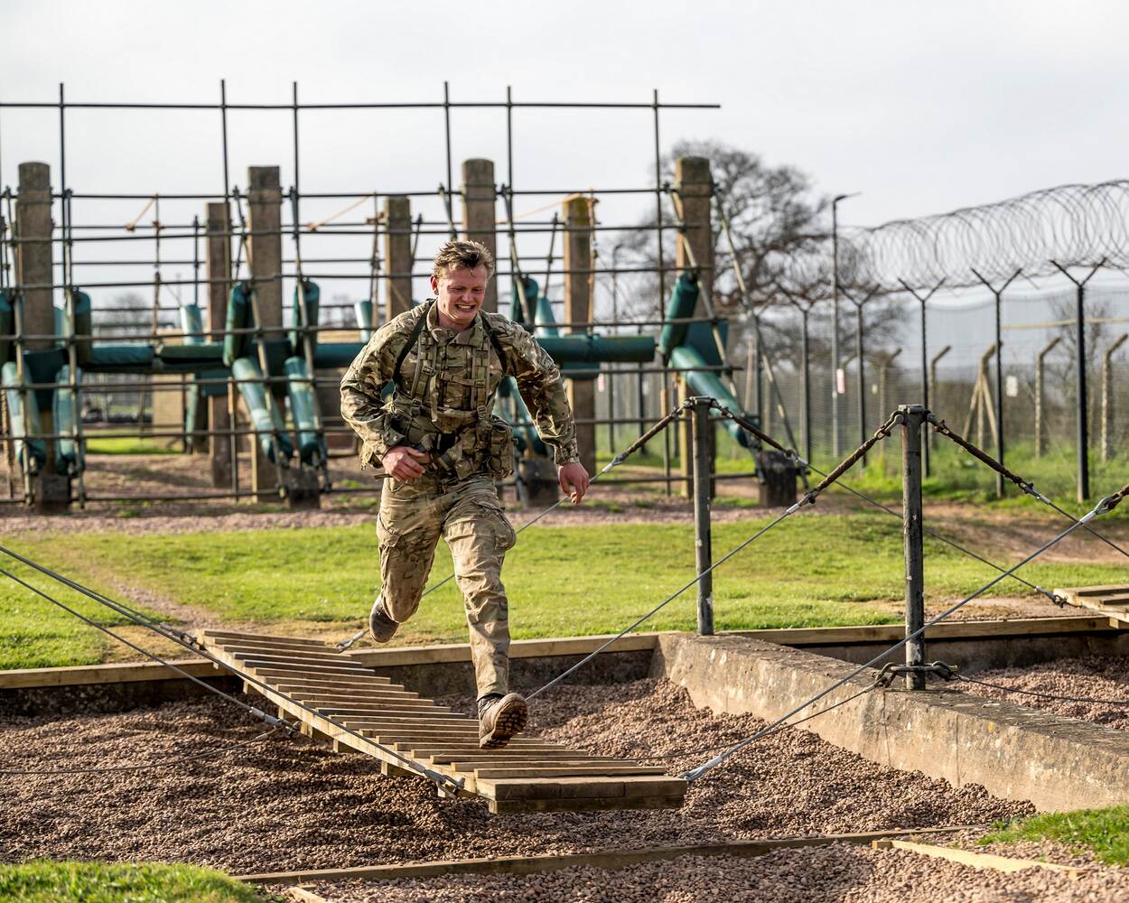 Hart van de AACC is het Commando Training Centre Royal Marines in Lympstone. Hier vandaan kijk je uit over de uitgestrekte estuary, een ecosysteem waarin zoet water van de rivier Exe mixt met het zoute water van de Atlantische Oceaan. Het lieflijke landschap staat in schril contrast met The Bottomfield. Op dit lager gelegen deel van de kazerne (grenzend aan de waterkant) ligt een hindernisbaan, waar de militairen meerdere keren per dag tot vervelens toe overheen worden gejaagd. Dit alles onder streng toezicht van de Physical Training Instructors, herkenbaar aan hun hagelwitte tanktops. Deze hoeders van de fysieke standaard zien erop toe dat hindernissen strak en op identieke wijze worden genomen. “De sportlessen op The Bottomfield zijn ronduit zwaar en talrijk”, vertelt Jorn. Ook na een slopende bivakperiode word je hier volledig afgemat. “Daarbij draag je altijd een verzwaarde webbing van bijna 10 kilo plus het persoonlijke wapen van 5 kilo. De fysieke belasting is ook daardoor hoog en blessures zijn de voornaamste reden dat 50 procent de opleiding voortijdig verlaat.”