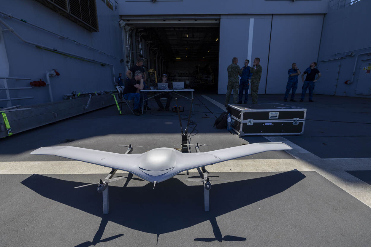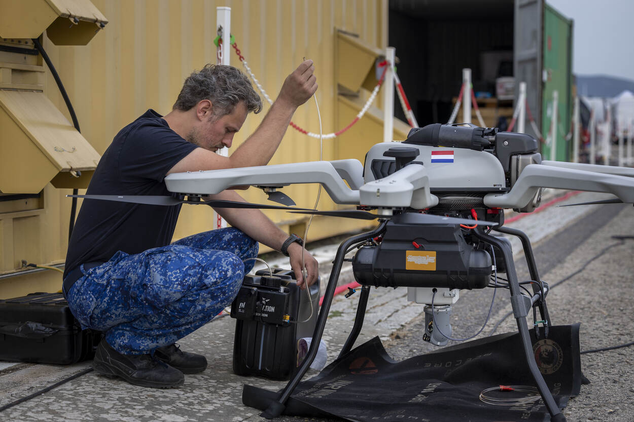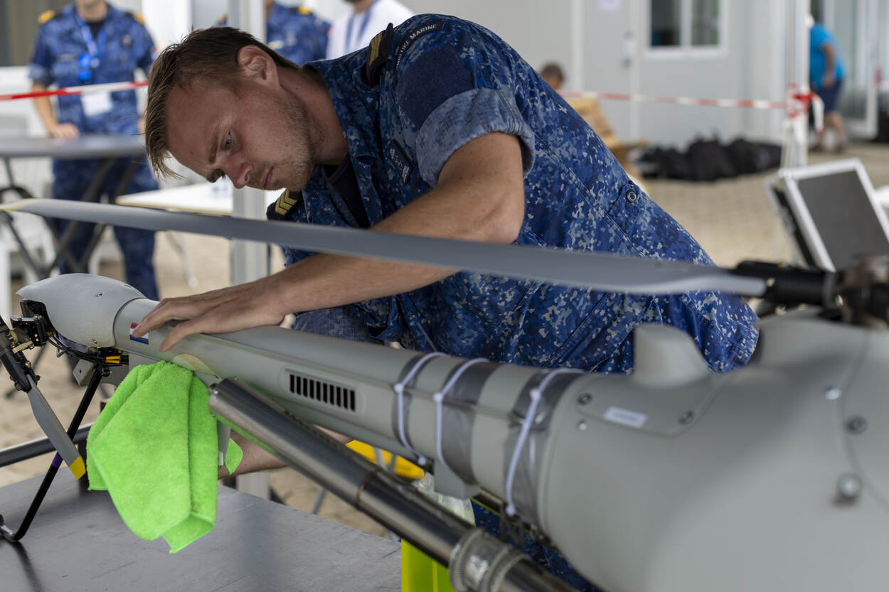 Integratie van drones in de operationele wereld van de marine is volgens luitenant ter zee 1 KMR Wouter bepaald geen karweitje dat je in een vrij weekend voor elkaar bokst. Op zee bewijzen onbemande vliegende systemen vooral hun nut als ze achter de horizon grote gebieden op dreigingen kunnen afspeuren. Hoe lang de delicate technische wondertjes dat volhouden, werd getest tijdens de recente innovatie-oefening REPMUS 2025.