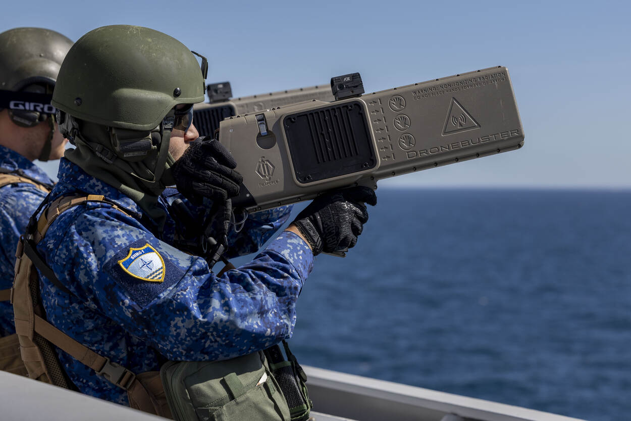 Volgens de marineman is er tijdens REPMUS flink op los geëxperimenteerd. Onder meer met klein kaliber-wapens, die een drone kinetisch uitschakelen. Ook waren zogenoemde soft kill-methodes in zwang, waarmee je een drone neutraliseert door de besturing over te nemen. Neutraliseren met een schot direct energy of laser kan ook. “Alle zijn door de veel lagere kosten per schot veel effectiever. Een combinatie van een klein kaliber en soft kill heeft de meeste kans op een doorbraak. Een vrij vliegende drone is zo manoeuvreerbaar dat de trefzekerheid met alleen een kinetisch wapen rap afneemt. We zien dat de eerste combi’s langzaam effectief beginnen te worden. Maar het zal nog geruime tijd duren voordat er systemen op de markt komen, waarbij succes gegarandeerd is.”