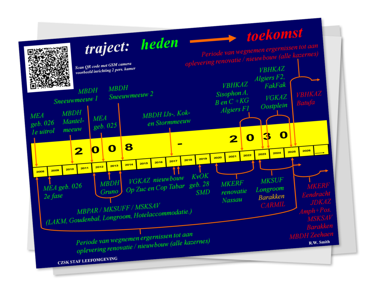 Naast de verbouwingen en renovaties van de marinierskazerne in de Maasstad, stonden en staan er meerdere legeringen van CZSK in de steigers. Bijvoorbeeld op Marinekazerne Erfprins in Den Helder. “Daar heeft CZSK in teamverband met DOSCO en RVB 2 á 3 jaar geleden de legering van gebouw Nassau opgeleverd als een van de grootste legeringsgebouwen van Nederland”, laat Smith weten. De aanpak van kaderlegering Eendracht volgt komend jaar vanuit projectteam VDL. De Van Braam Houckgeestkazerne in Doorn is eveneens onder handen genomen en inmiddels voor driekwart gereed. “Alleen gebouw Batufa moet nog gebeuren; daar gaan 118 eenpersoonskamers komen.”
