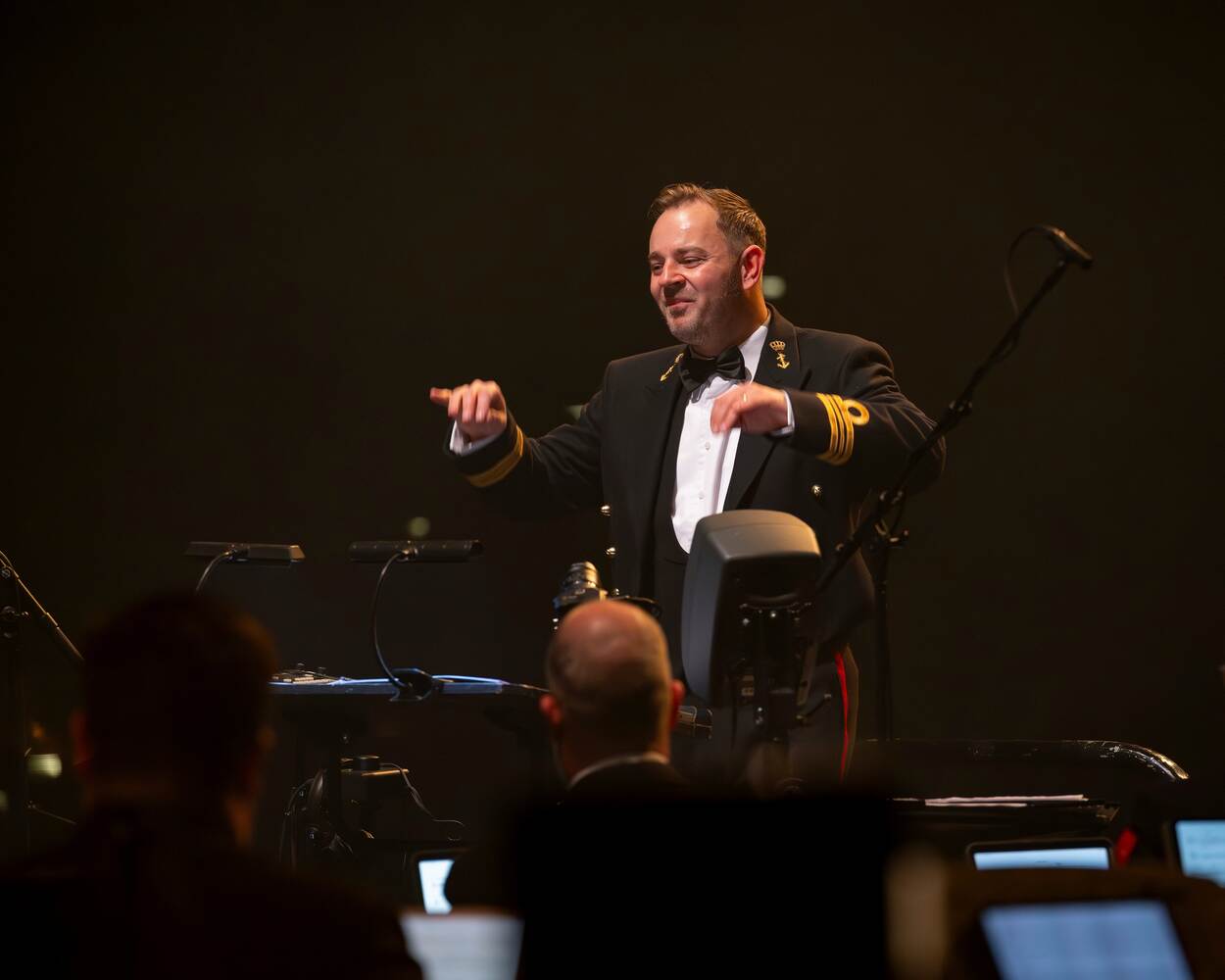 Dirigent MAJMARNSKAP Erik van de Kolk beheerst zowel de ceremoniële tradities als het concertrepertoire van de Marinierskapel.