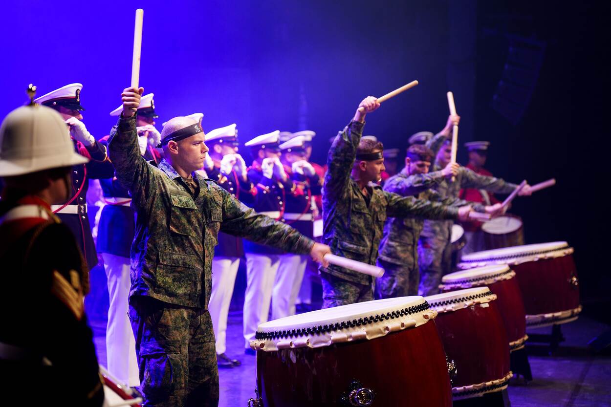 Indrukwekkend was het gezamenlijke optreden van de Marinierskapel en Tamboers & Pijpers met de ‘Royal Marines Corps of Drums’ en de ‘US Marines Drum & Bugle Corps’.