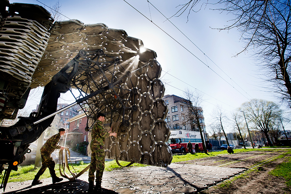 Genisten van de landmacht leggen een tijdelijke ‘vloer’ aan. Foto: Evert-Jan Daniels
