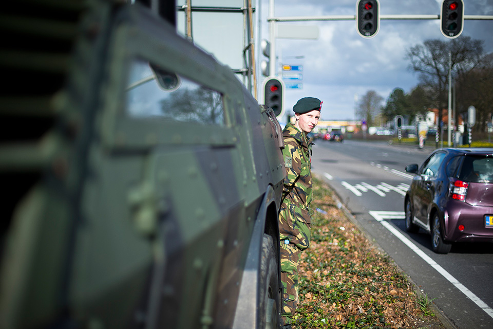 Een militair van de landmacht houdt toezicht op de N44. Foto: korporaal-1 Hille Hillinga